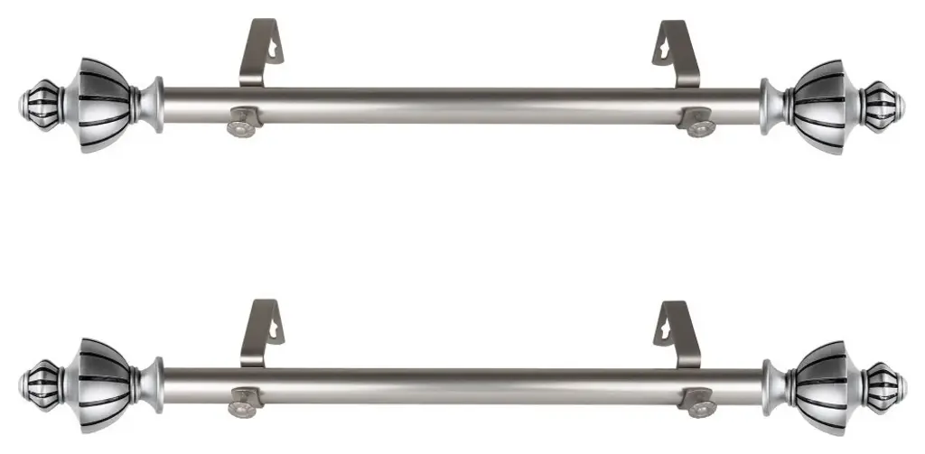 Central Design Products is thrilled to present our side curtain rods, which will add alluring style and refined touch to your window treatment and home decor. Add a nice touch to each side of your beautiful window to apply a modern and unique look in your living space. Includes two 1" diameter telescoping rods, four finials, four side mount brackets and mounting hardware. Size: 12-20" Projection: 3.625" Steel Rod