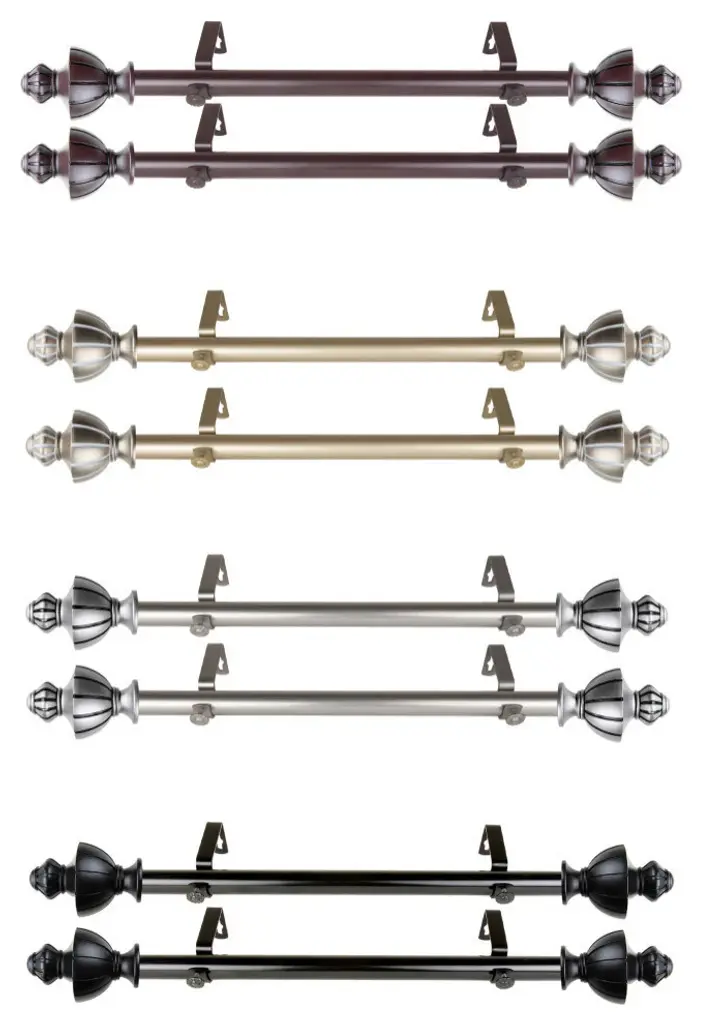 Central Design Products is thrilled to present our side curtain rods, which will add alluring style and refined touch to your window treatment and home decor. Add a nice touch to each side of your beautiful window to apply a modern and unique look in your living space. Includes two 1" diameter telescoping rods, four finials, four side mount brackets and mounting hardware. Size: 12-20" Projection: 3.625" Steel Rod