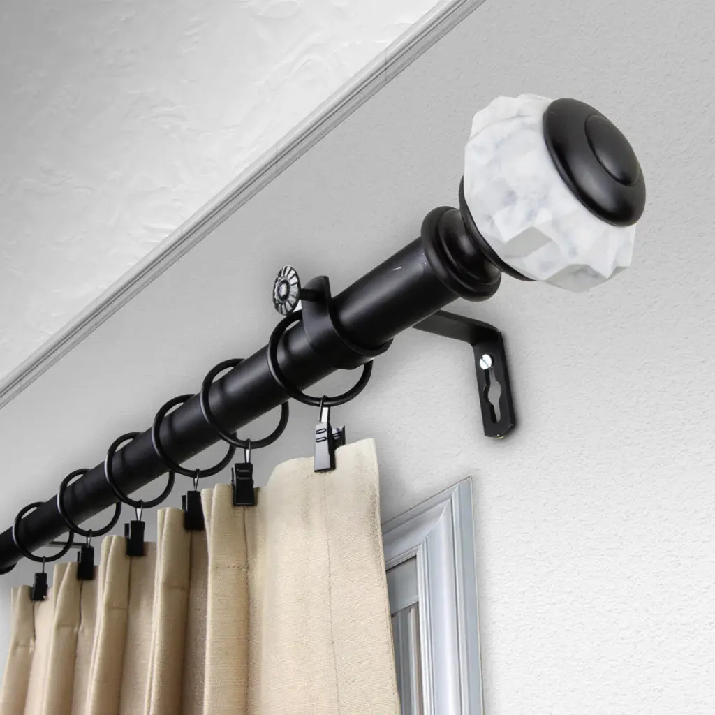Jade 1" Diameter Curtain Rod, Black, 66-120"