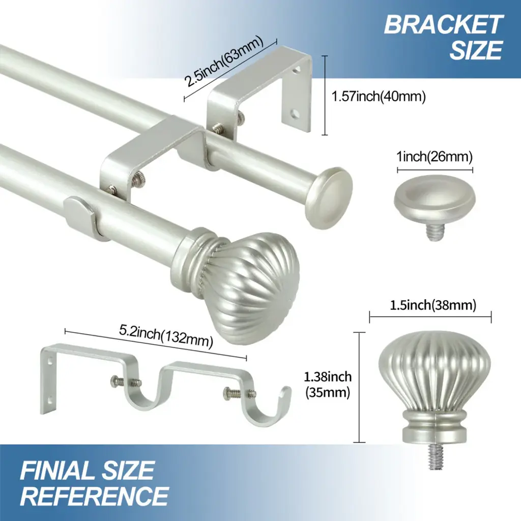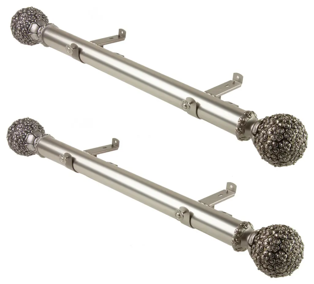 This side mount curtain rod will add alluring style and refined touch to your window treatment and homeIncludes two 1.5" diameter non-telescoping 24 inch rod, four finials, four side mount brackets and mounting hardware Finial measurement: 3-3/4" W x 3-1/4" H x 3-1/4" DBracket Projection: 4.5 inchInstallation instructions includedSteel Rod and Resin Finial