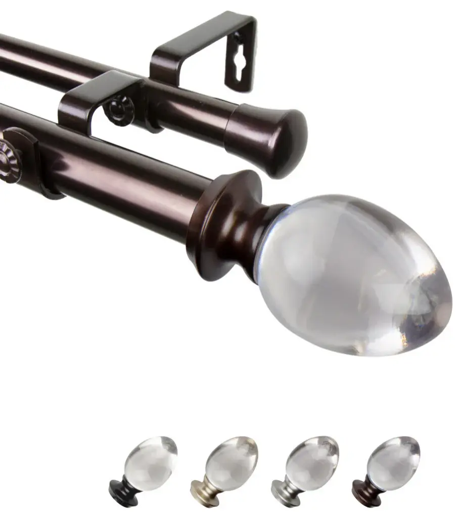 Central Design Products is thrilled to present our top-of-the-line Double Curtain Rods, the ultimate addition to any window treatment. Our high-quality rods are crafted with precision to provide a sleek and modern look to your home decor. Each set includes a double curtain rod, finials, sturdy mounting brackets, and all necessary mounting hardware. The elegant color of our curtain rods adds a touch of sophistication to your space. Upgrade your window treatment with Central Design Products'' Double Curtain Rods today! Includes 1 curtain rod of 1" diameter, one curtain rod of 13/16" diameter, finials, endcaps, mounting brackets, and mounting hardware. Size: 120-170" Projection: 6.75" Front Rod Diameter: 1" / Back Rod Diameter: 13/16" Material: Steel
