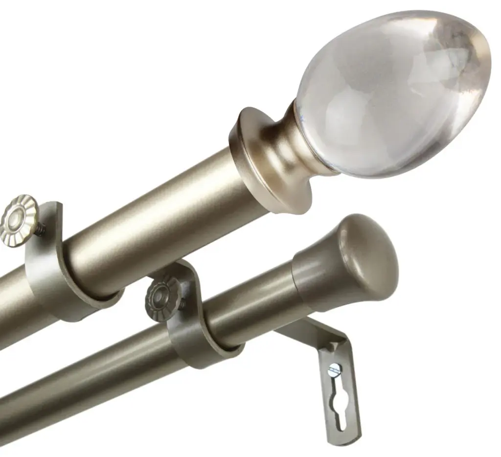 Central Design Products is thrilled to present our top-of-the-line Double Curtain Rods, the ultimate addition to any window treatment. Our high-quality rods are crafted with precision to provide a sleek and modern look to your home decor. Each set includes a double curtain rod, finials, sturdy mounting brackets, and all necessary mounting hardware. The elegant color of our curtain rods adds a touch of sophistication to your space. Upgrade your window treatment with Central Design Products'' Double Curtain Rods today! Includes 1 curtain rod of 1" diameter, one curtain rod of 13/16" diameter, finials, endcaps, mounting brackets, and mounting hardware. Size: 48-84" Projection: 6.75" Front Rod Diameter: 1" / Back Rod Diameter: 13/16" Material: Steel