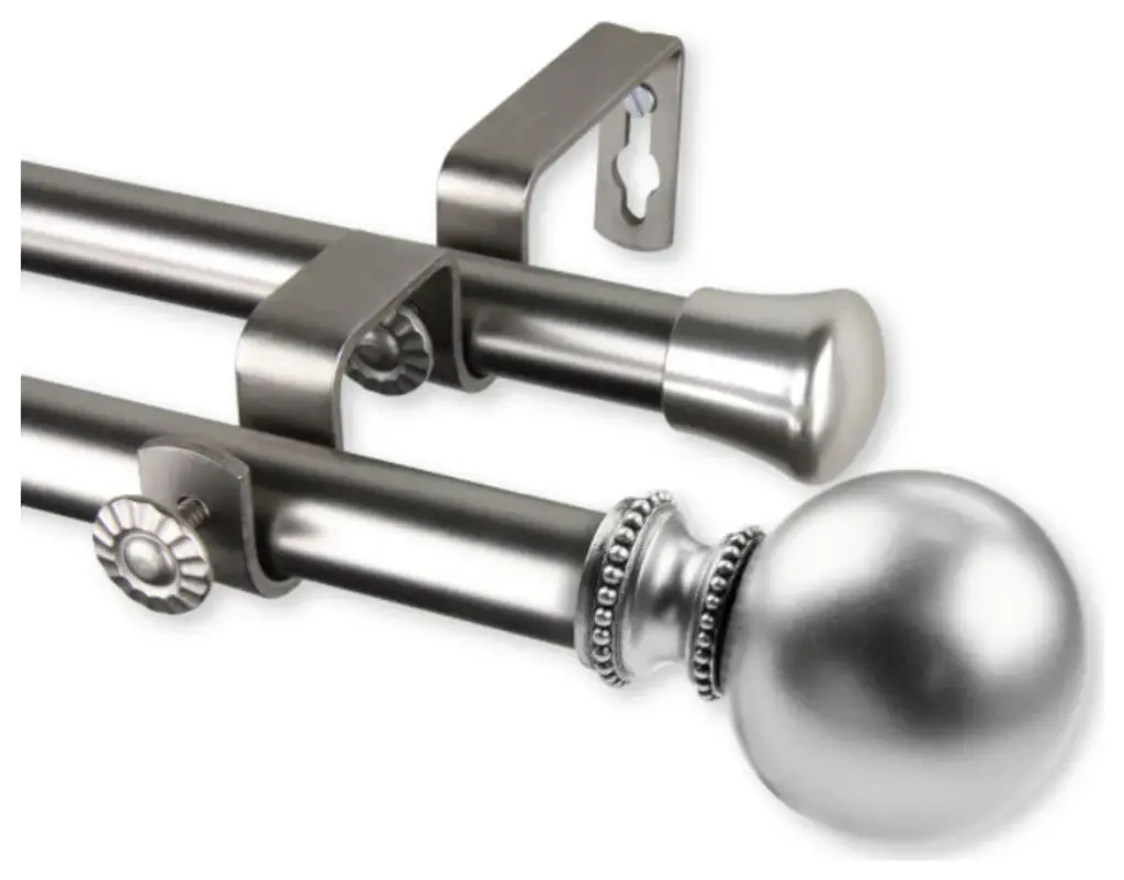 Introduce an elegant touch to your window treatment with this beautiful 13/16" diameter double curtain rod set, made of high quality steel rods. Includes 2 telescoping steel pole, mounting hardware, brackets, and 2 finials Projection: 2.875" Finial measurement: 3" W x 2.33" H x 2.33" D