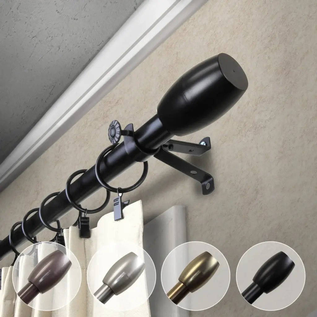 Central Design Products is thrilled to present our top-of-the-line Single Curtain Rods, the ultimate addition to any window treatment. Our high-quality rods are crafted with precision to provide a sleek and modern look to your home decor. Each set includes one 13/16" diameter curtain rod, sturdy mounting brackets, and all necessary mounting hardware. With a projection of 2.875" and a rod diameter of 13/16", our steel rods are built to last. The elegant color of our curtain rods adds a touch of sophistication to your space. Upgrade your window treatment with Central Design Products'' Single Curtain Rods today! Includes 1 curtain rod of 13/16" diameter, finials, mounting brackets, and mounting hardware. Size: 18-28" Projection: 2.875" Rod Diameter: 13/16" Material: Steel Color: Black