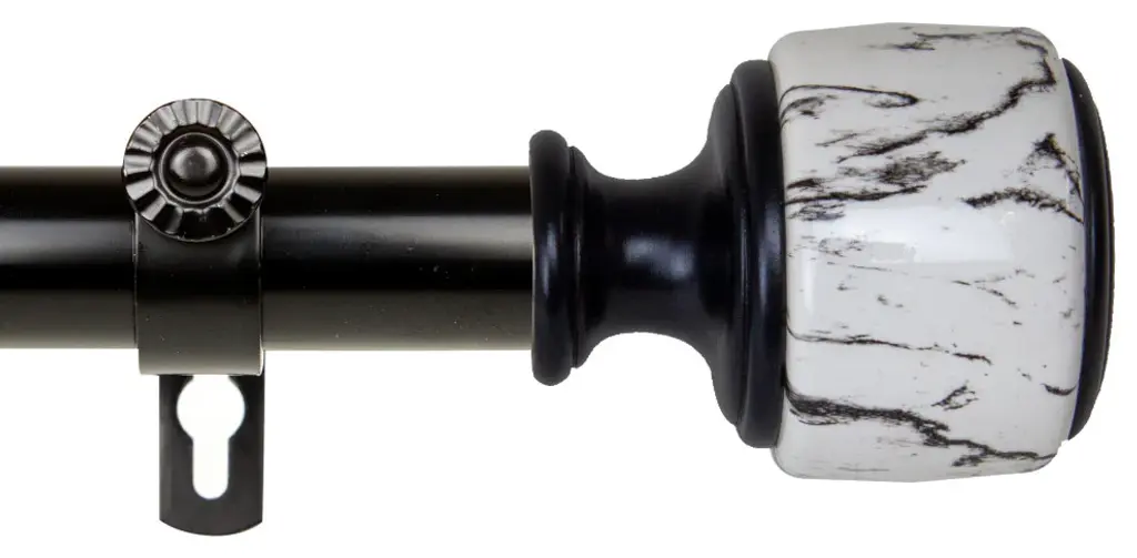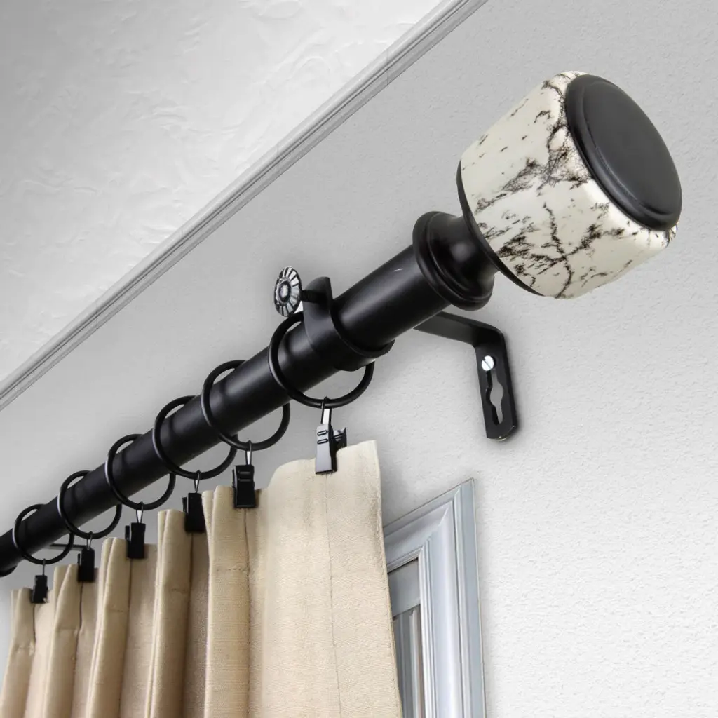 Decorate your window with Central Design Products Curtain Rod. This rod is made of solid steel pole with high quality finials that will add sophisticated touch to your windowIncludes one 28-48 inches telescoping steel pole, 2 brackets, and 2 finialsFinial Measurement: 3" W x 2-1/2" H x 2-1/2" DProjection: 3.625 inchesRod Diameter: 1 inch