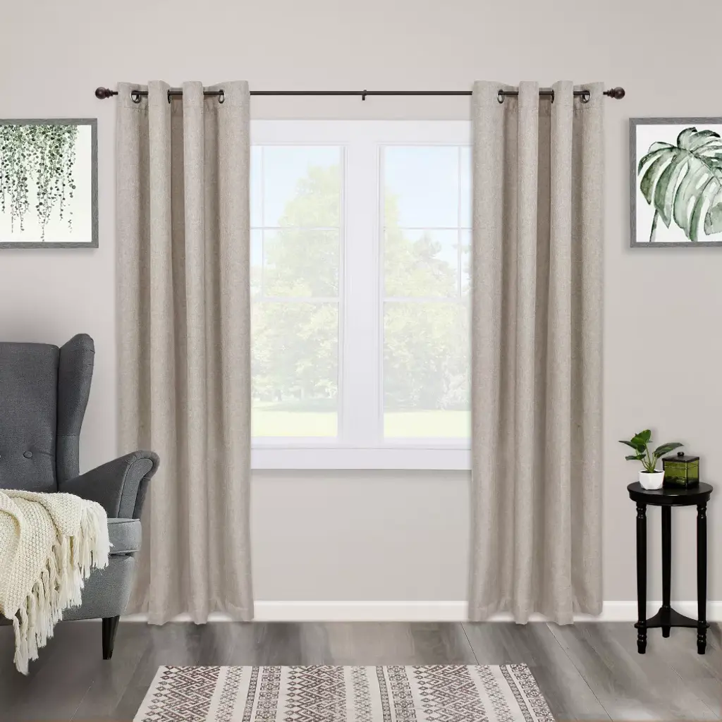 The Birkin 3/4" Fast Fit Easy Install Decorative Window Curtain Rod by Kenney is as easy to hang as a picture frame. Position the strong, innovative thermoplastic brackets onto the wall and tap the included nails into place. Using nails instead of screws leaves less damage behind on the wall. The easy installation doesn't sacrifice performance, as the Fast Fit curtain rods provide excellent support, up to 25 pounds. The telescoping steel rod adjusts from 42 inches to 120 inches to fit your window and projects 3.5 inches from the wall. A 3/4 inch diameter curtain rod is recommended for use with light to heavyweight curtains on larger windows and in larger rooms, like your bedroom, living room, and more. Drapery Hardware Set Includes: one telescoping steel curtain rod with decorative finials (3.48 L x 2.48 W x 2.48 H), two thermoplastic brackets, one center support, nails, measuring template, and installation instructions. When considering purchasing a curtain rod, measuring the area is essential to ensure a perfect fit. Here’s a few helpful tips on how to measure before buying. Determine the Curtain Rod’s Placement. Above Your Window: For a more spacious appearance, hang your curtains 4" to 6" above your window’s frame or trim. Choose Your Curtain Rod’s Width: Measure the width of your window, including the frame or trim. Measure the Curtain Rod’s Diameter: Consider the weight of your curtains (e.g., blackout curtains, thermal curtains, or sheers) when selecting the rod diameter. Choose the appropriate curtain rod size based on the weight and style of your drapes.
