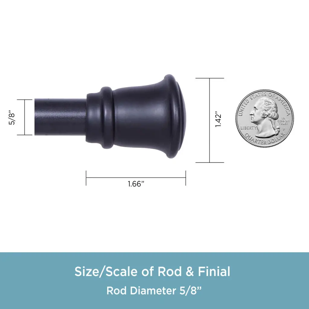 Kenney Trumpet 5/8 Decorative Curtain Rod & Holdback Set, Black, 28-48