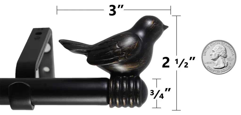 Add a touch of style to your home with the Benji 5/8" Standard Decorative Window Curtain Rod by Kenney.The 5/8 inch diameter Benji curtain rod in oil rubbed bronze features matching soft square-shaped finial ends. Use in your kitchen, bedroom, dining room, and living room to hang light to medium weight curtains. The telescoping rod adjusts from 48 inches to 86 inches to fit your window and projects 3 inches from the wall. It is ideal for hanging curtains with pockets, grommets, back tabs, and tab tops, but can also be used with clip rings.Drapery Hardware Set Includes: one telescoping steel curtain rod with decorative soft square finials (1.94"" L x 1.45"" W x 1.45"" H), two mounting brackets, one center support bracket, screws, drywall anchors, and installation instructions.• The Kenney Benji 5/8" Standard Decorative Window Curtain Rod features soft square-shaped finial ends• 5/8" diameter curtain rod adjusts from 48-86" to fit your window and projects 3" from the wall• For use with light to medium weight curtains in your kitchen, bedroom, dining room, and living room• Steel rod in oil rubbed bronze finish with decorative soft square finial ends and matching mounting hardware• Includes: one telescoping curtain rod with finials, two brackets, one center support bracket, screws, drywall anchors, and installation instructions"