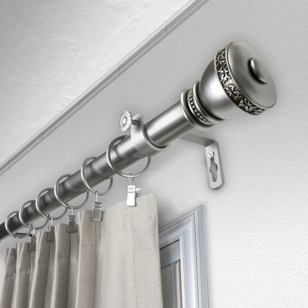 Includes: 1" curtain rod, finials, mounting hardware. Projection: 3.625" Finials Measure: 3" x 2.5" x 2.5"
