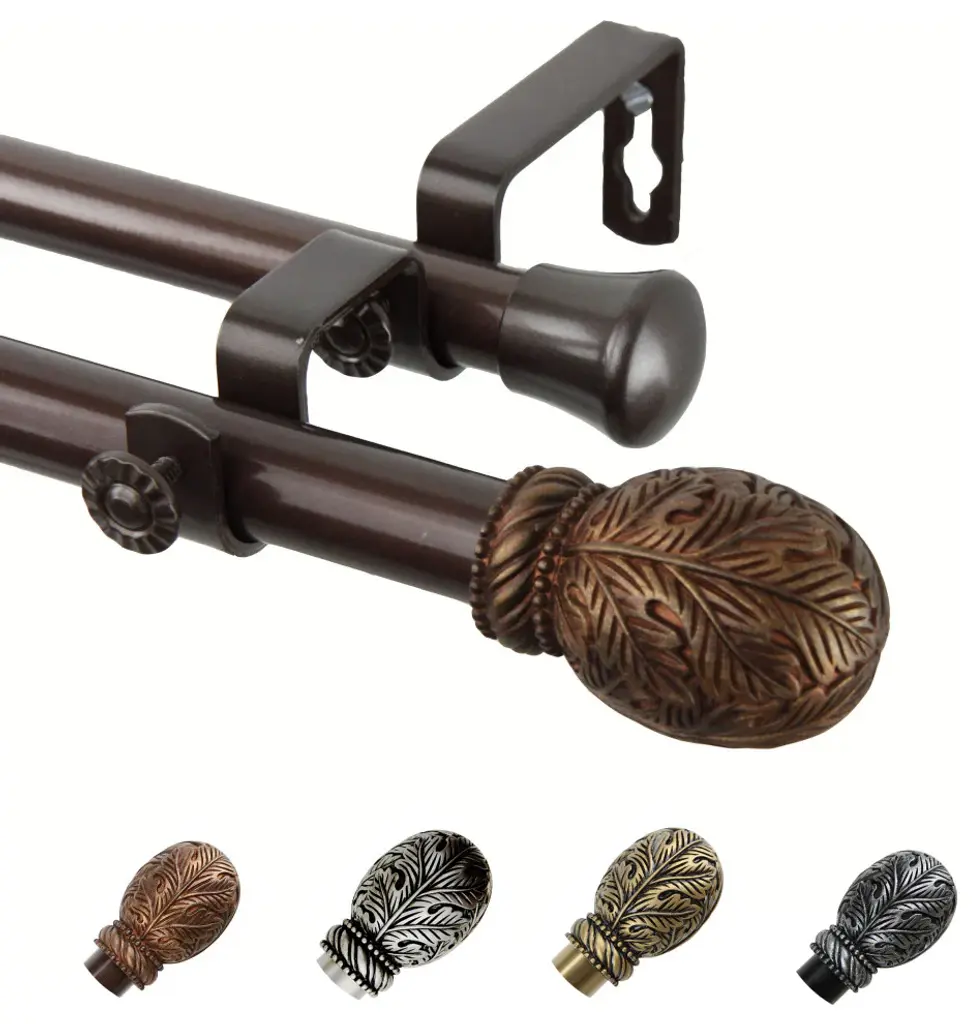 Includes: 1" front rod and 13/16" back rod, finials, mounting hardware. Projection: 3.625" Finials Measure: 3" x 2.5" x 2.5"