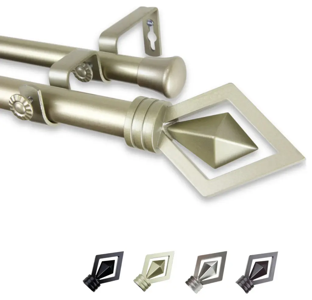 Central Design Products is thrilled to present our top-of-the-line Double Curtain Rods, the ultimate addition to any window treatment. Our high-quality rods are crafted with precision to provide a sleek and modern look to your home decor. Each set includes a double curtain rod, finials, sturdy mounting brackets, and all necessary mounting hardware. The elegant color of our curtain rods adds a touch of sophistication to your space. Upgrade your window treatment with Central Design Products'' Double Curtain Rods today! Includes 1 curtain rod of 1" diameter, one curtain rod of 13/16" diameter, finials, endcaps, mounting brackets, and mounting hardware. Size: 28-48" Projection: 6.75" Front Rod Diameter: 1" / Back Rod Diameter: 13/16" Material: Steel