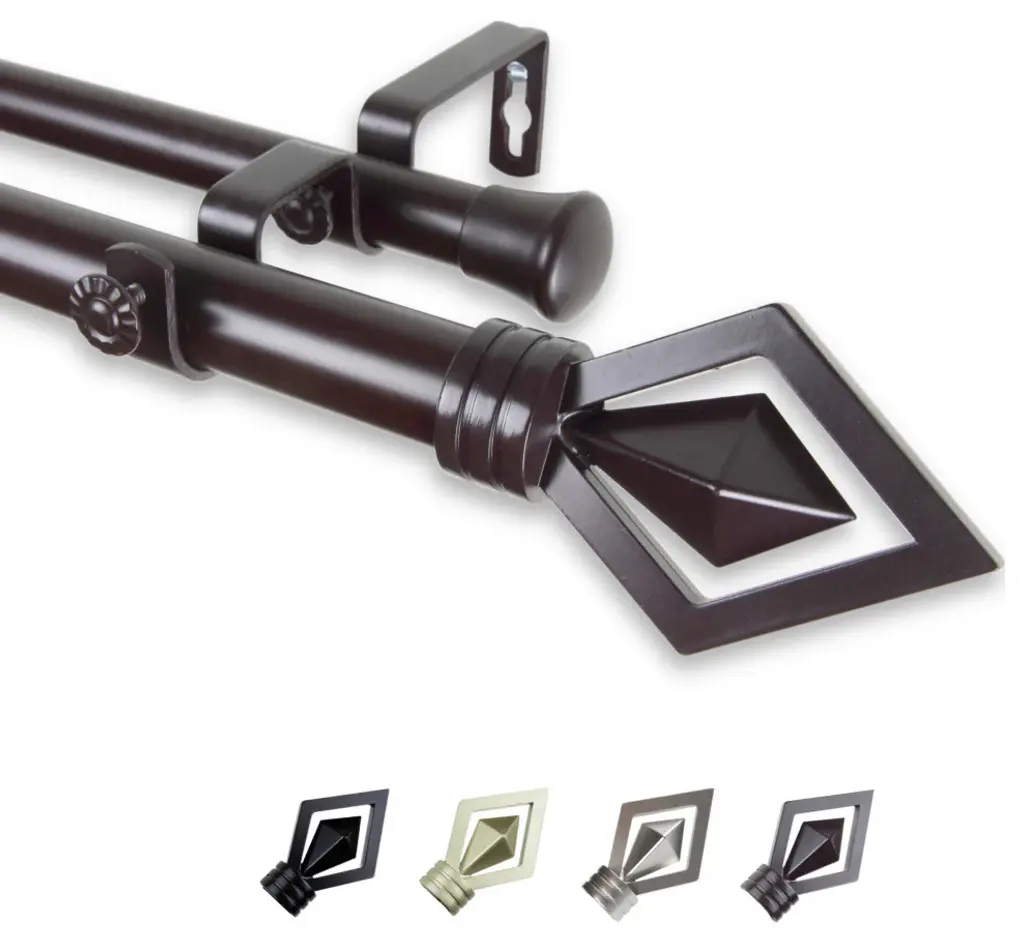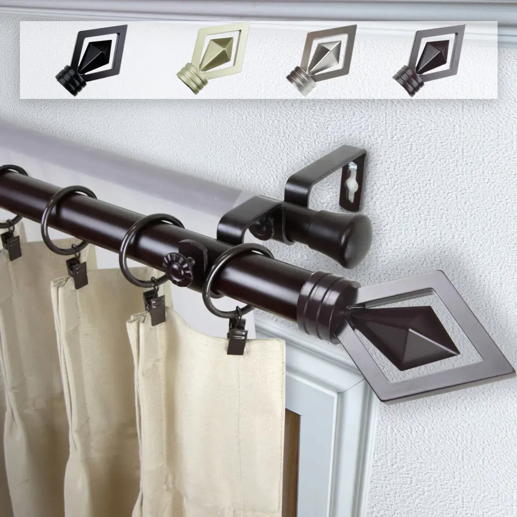 Central Design Products is thrilled to present our top-of-the-line Double Curtain Rods, the ultimate addition to any window treatment. Our high-quality rods are crafted with precision to provide a sleek and modern look to your home decor. Each set includes a double curtain rod, finials, sturdy mounting brackets, and all necessary mounting hardware. The elegant color of our curtain rods adds a touch of sophistication to your space. Upgrade your window treatment with Central Design Products'' Double Curtain Rods today! Includes 1 curtain rod of 1" diameter, one curtain rod of 13/16" diameter, finials, endcaps, mounting brackets, and mounting hardware. Size: 120-170" Projection: 6.75" Front Rod Diameter: 1" / Back Rod Diameter: 13/16" Material: Steel