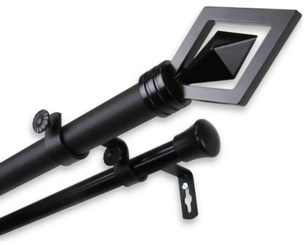 Central Design Products is thrilled to present our top-of-the-line Double Curtain Rods, the ultimate addition to any window treatment. Our high-quality rods are crafted with precision to provide a sleek and modern look to your home decor. Each set includes a double curtain rod, finials, sturdy mounting brackets, and all necessary mounting hardware. The elegant color of our curtain rods adds a touch of sophistication to your space. Upgrade your window treatment with Central Design Products'' Double Curtain Rods today! Includes 1 curtain rod of 1" diameter, one curtain rod of 13/16" diameter, finials, endcaps, mounting brackets, and mounting hardware. Size: 48-84" Projection: 6.75" Front Rod Diameter: 1" / Back Rod Diameter: 13/16" Material: Steel