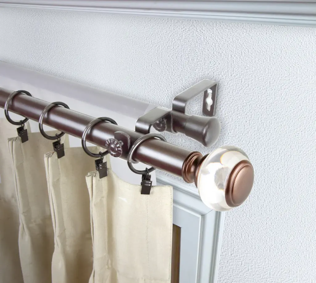 Decorate your window with Central Design Products Curtain Rod. This rod is made of solid steel pole with high quality finials that will add sophisticated touch to your windowIncludes two 160-240 inches telescoping steel pole 5 brackets and 2 finialsFinial Measurement: 2-3/4" W x 2-1/2" H x 2-1/2" DProjection: from rod to wall 6.75 inches back rod to wall 3.75 inchesRod Diameter: 1 inch