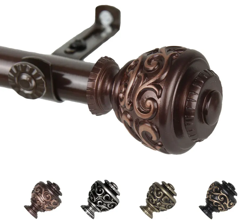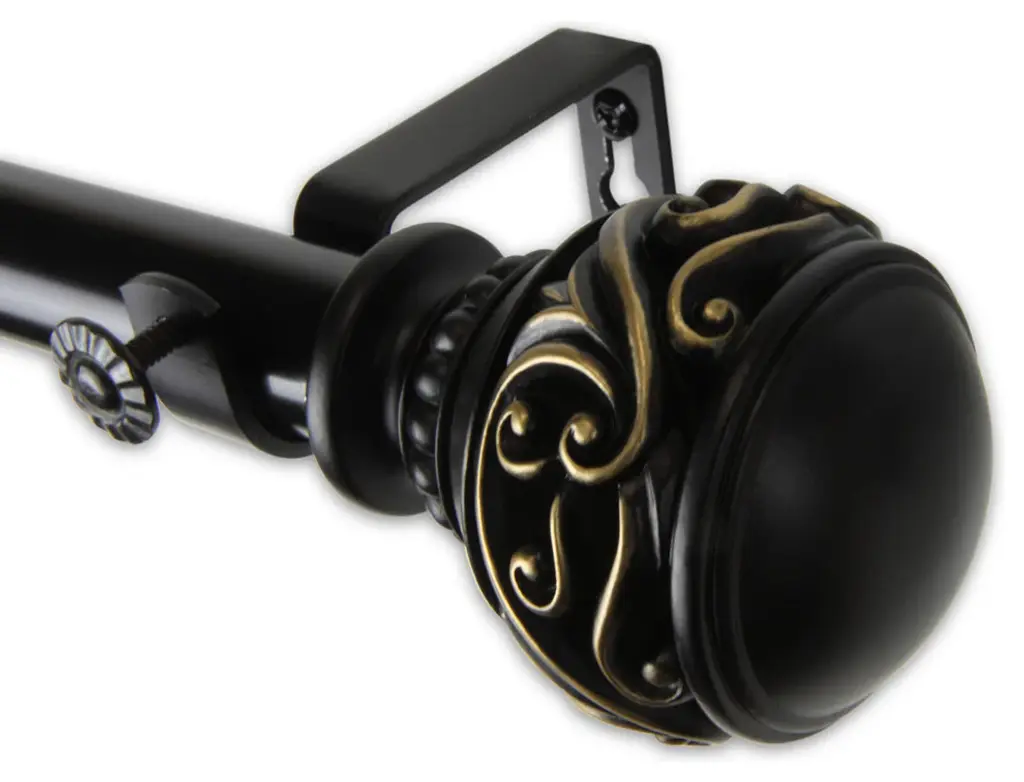 Leon Curtain Rod 1" OD 28-48 inch - BronzeDecorate your window treatment with this timeless 1 inch single curtain rod to add sophisticated look into your decor. Matching double rods and side rods are available and sold separately.Includes one 1 in. adjustable single rod, 2 brackets and mounting hardwareRod projection: 3.625 in.Steel rod and resin finialRod diameter: 1"Finial measurement: 3"W x 2-1/4"H x 2-1/4"DRod length: 28-48 inchColor: BronzeGrouped by Length: 28-48 inch Grouped by Colour: Bronze