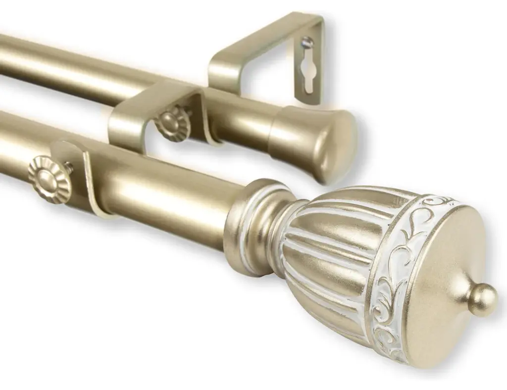 Leopold 1" Double Curtain Rod 120-170", Light Gold