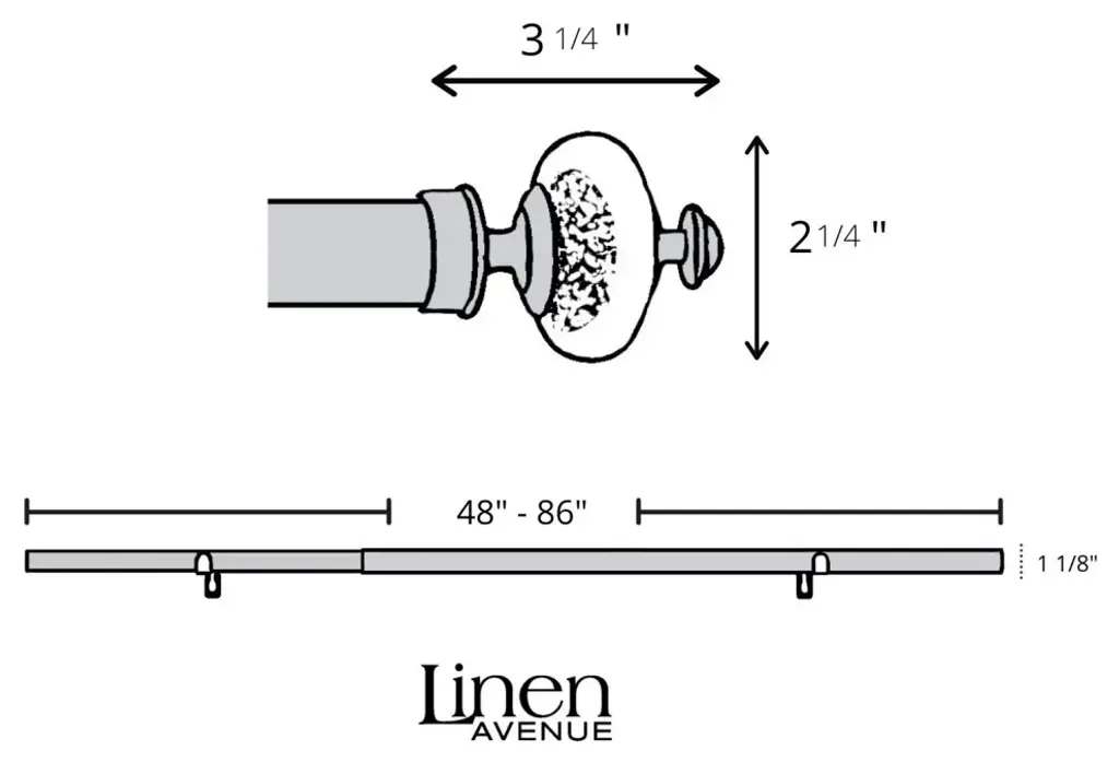 Our Linen Avenue collection of curtain rods, brackets and curtain rings will elevate all your window coverings. Our adjustable, heavy-duty steel drapery supports up to 20 pounds and has a maximum diameter of 1 1/8th inch rods. Curtain rods come in 3 different sizes: 24-48, 48-86, and 66-120 inches and many different finial designs in 4 different colors. Seamlessly compliment your drapery rods while designing a stylish environment.| TELESCOPE ADJUST | Crafted from sturdy rolled steel metal and with a diameter of 1 1/8 inches these curtain rods are perfect for all windows. Available in three sizes: 24-48, 48-86, and 66-120 inches. Each rod set comes with two adjustable telescopic poles.| END FINIALS | Our high quality curtain rod ends are ideal for any stylish and elegant interior design with a variety of options available.| ASSORTED FINISHES | Refine your style with our various options: Brushed Nickel, Matte Black, Brass, and Antique Silver.| SIMPLE INSTALLATION | Standard mounting brackets, all hardware, one drapery curtain rod and two end finials included. The smallest size of 24-48 has two brackets while larger sizes of 48-86 and 66-120 include three brackets.| COMPLETE SET | Our drapery curtain rings and decorative brackets are designed to match our curtain rods in terms of style, color, and finish. By using the same design elements across the entire window treatment, customers can achieve a cohesive look that enhances the overall aesthetics of their room.