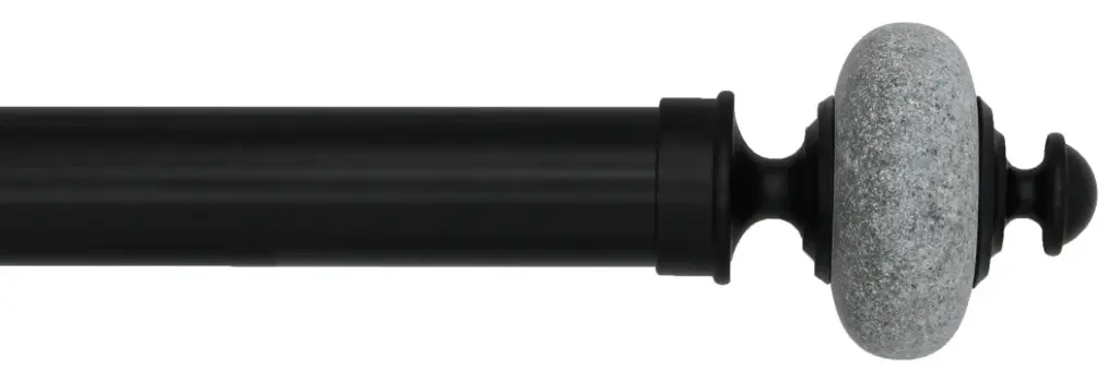 Linen Avenue Grey Stone Cap Single Curtain Rod Set,66-120 Inch,matte Black