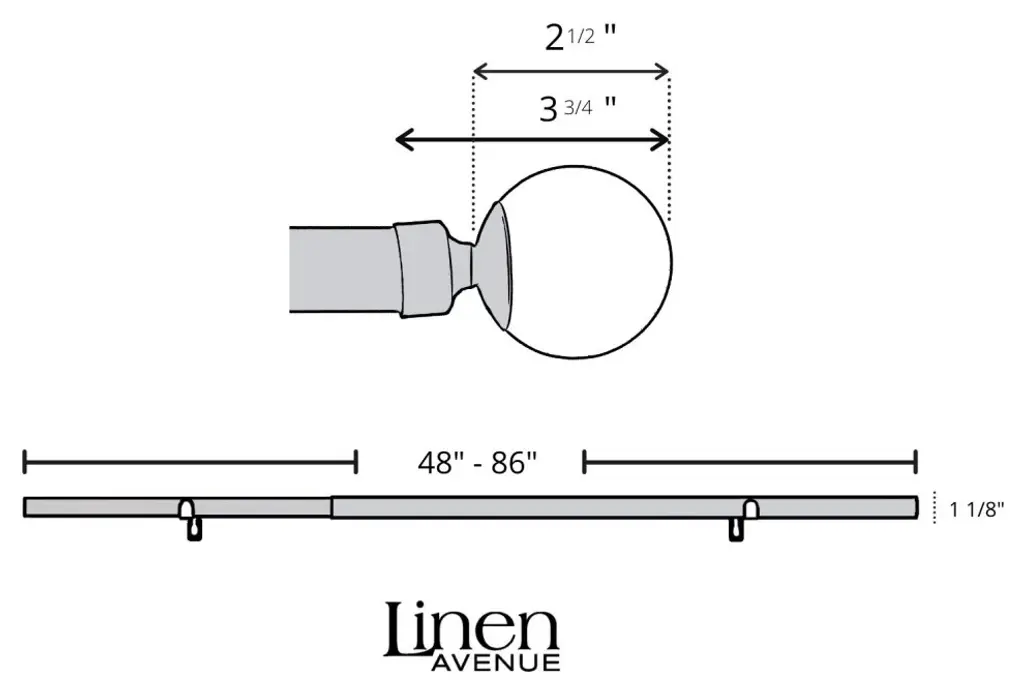 Our Linen Avenue collection of curtain rods, brackets and curtain rings will elevate all your window coverings. Our adjustable, heavy-duty steel drapery supports up to 20 pounds and has a maximum diameter of 1 1/8th inch rods. Curtain rods come in 3 different sizes: 24-48, 48-86, and 66-120 inches and many different finial designs in 4 different colors. Seamlessly compliment your drapery rods while designing a stylish environment.| TELESCOPE ADJUST | Crafted from sturdy rolled steel metal and with a diameter of 1 1/8 inches these curtain rods are perfect for all windows. Available in three sizes: 24-48, 48-86, and 66-120 inches. Each rod set comes with two adjustable telescopic poles.| END FINIALS | Our high quality curtain rod ends are ideal for any stylish and elegant interior design with a variety of options available.| ASSORTED FINISHES | Refine your style with our various options: Polished Nickel, Matte Black, Brass, and Antique Silver.| SIMPLE INSTALLATION | Standard mounting brackets, all hardware, one drapery curtain rod and two end finials included. The smallest size of 24-48 has two brackets while larger sizes of 48-86 and 66-120 include three brackets.| COMPLETE SET | Our drapery curtain rings and decorative brackets are designed to match our curtain rods in terms of style, color, and finish. By using the same design elements across the entire window treatment, customers can achieve a cohesive look that enhances the overall aesthetics of their room.