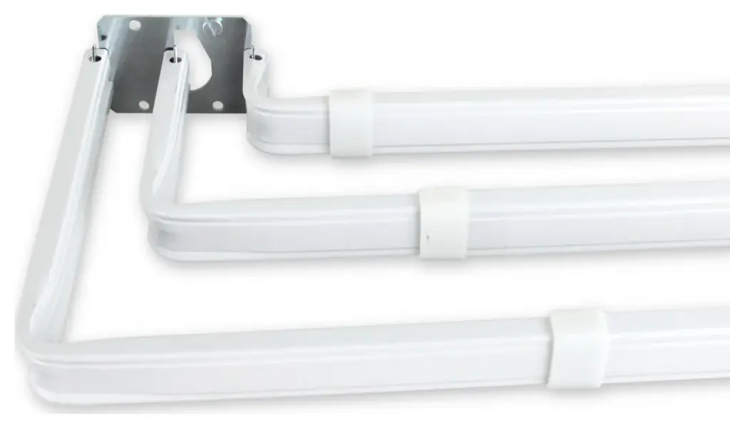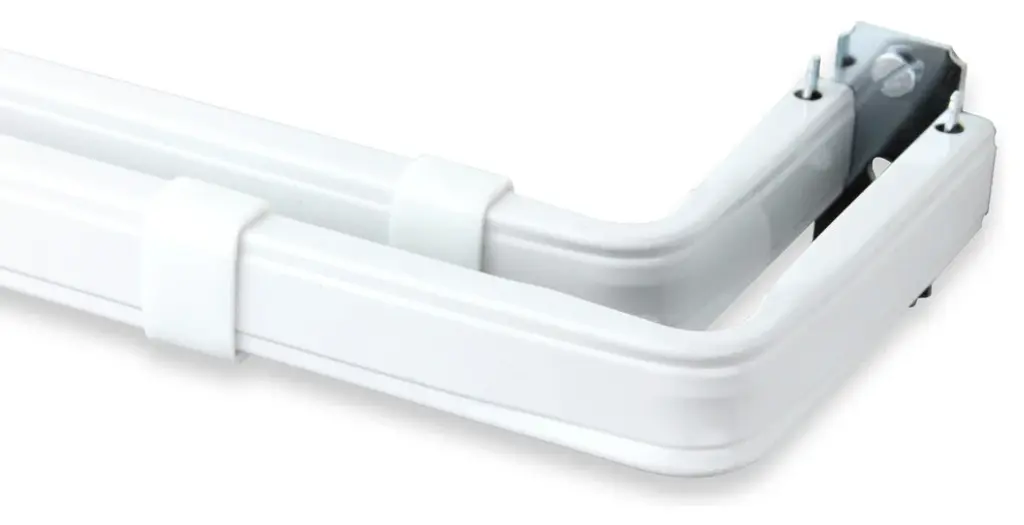Lockseam Double Curtain Rod 84-120" - WhitePresenting the lock-seam double curtain rod. Dress this rod with your favorite rod pocket curtains or valances. High quality solid build with a coating on the inside and outside.Includes two heavy duty 3/4 inch tall lock-seam curtain rod, mounting brackets and mounting hardwareRod construction: 84 inch - 120 inch Projection: 2 inch wall to back rod, 3 inch wall to front rodMaterial: metal rodColor: whiteMade in TaiwanGrouped by Length: 84-120"