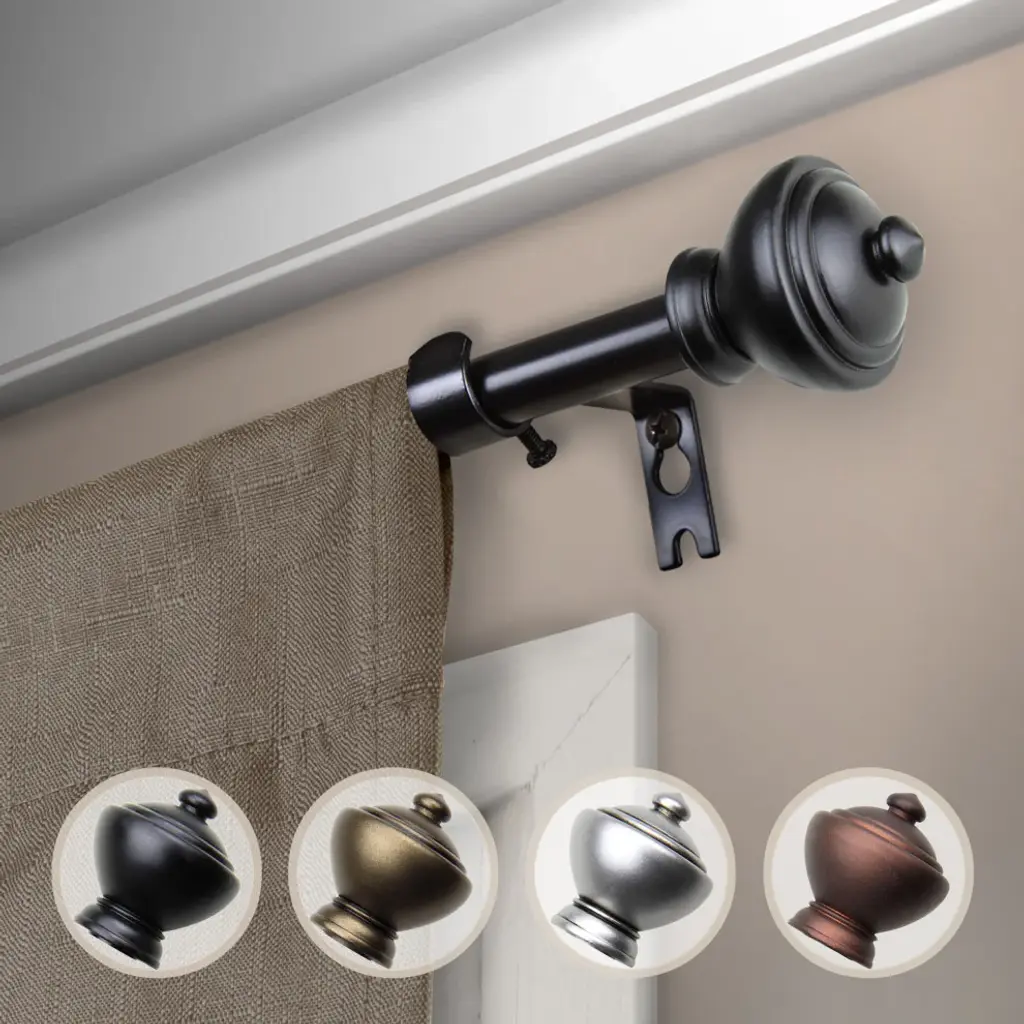 Central Design Products is thrilled to present our top-of-the-line Single Curtain Rods, the ultimate addition to any window treatment. Our high-quality rods are crafted with precision to provide a sleek and modern look to your home decor. Each set includes one 5/8" diameter curtain rod, sturdy mounting brackets, and all necessary mounting hardware. With a projection of 2.75" and a rod diameter of 5/8", our steel rods are built to last. The elegant color of our curtain rods adds a touch of sophistication to your space. Upgrade your window treatment with Central Design Products'' Single Curtain Rods today! Includes 1 curtain rod of 5/8" diameter, finials, mounting brackets, and mounting hardware. Size: 28-48" Projection: 2.75" Rod Diameter: 5/8" Material: Steel Color: Black