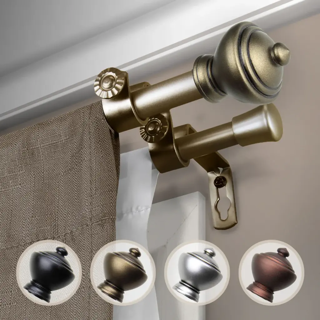 Central Design Products is thrilled to present our top-of-the-line Single Curtain Rods, the ultimate addition to any window treatment. Our high-quality rods are crafted with precision to provide a sleek and modern look to your home decor. Each set includes two 5/8" diameter curtain rods, sturdy mounting brackets, and all necessary mounting hardware. With a projection of 6.25" to front rod, 3.75" to back rod, and a rod diameter of 5/8", our steel rods are built to last. The elegant color of our curtain rods adds a touch of sophistication to your space. Upgrade your window treatment with Central Design Products''Double Curtain Rods today! Includes 2 curtain rods of 5/8" diameter, finials, mounting brackets, and mounting hardware. Size: 48-84" Projection: 6.25" to front rod, 3.75" to back rod Rod Diameter: 5/8" Material: Steel Color: Antique Gold