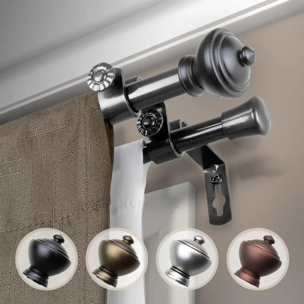 Central Design Products is thrilled to present our top-of-the-line Single Curtain Rods, the ultimate addition to any window treatment. Our high-quality rods are crafted with precision to provide a sleek and modern look to your home decor. Each set includes two 5/8" diameter curtain rods, sturdy mounting brackets, and all necessary mounting hardware. With a projection of 6.25" to front rod, 3.75" to back rod, and a rod diameter of 5/8", our steel rods are built to last. The elegant color of our curtain rods adds a touch of sophistication to your space. Upgrade your window treatment with Central Design Products''Double Curtain Rods today! Includes 2 curtain rods of 5/8" diameter, finials, mounting brackets, and mounting hardware. Size: 48-84" Projection: 6.25" to front rod, 3.75" to back rod Rod Diameter: 5/8" Material: Steel Color: Black