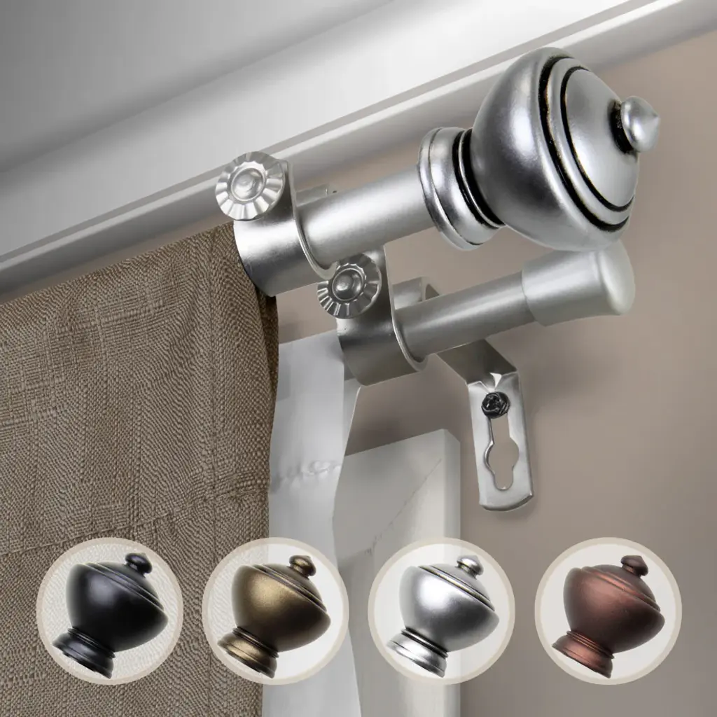 Central Design Products is thrilled to present our top-of-the-line Single Curtain Rods, the ultimate addition to any window treatment. Our high-quality rods are crafted with precision to provide a sleek and modern look to your home decor. Each set includes two 5/8" diameter curtain rods, sturdy mounting brackets, and all necessary mounting hardware. With a projection of 6.25" to front rod, 3.75" to back rod, and a rod diameter of 5/8", our steel rods are built to last. The elegant color of our curtain rods adds a touch of sophistication to your space. Upgrade your window treatment with Central Design Products''Double Curtain Rods today! Includes 2 curtain rods of 5/8" diameter, finials, mounting brackets, and mounting hardware. Size: 48-84" Projection: 6.25" to front rod, 3.75" to back rod Rod Diameter: 5/8" Material: Steel Color: Satin Nickel