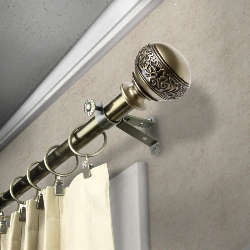 Introduce an elegant touch to your window treatment with this beautiful 13/16" diameter curtain rod set, made of high quality steel rods. Includes telescoping steel pole, mounting hardware, brackets, and 2 finials Projection: 2.875" Finial measurement: 2.75" W x 2.5" H x 2.5" D