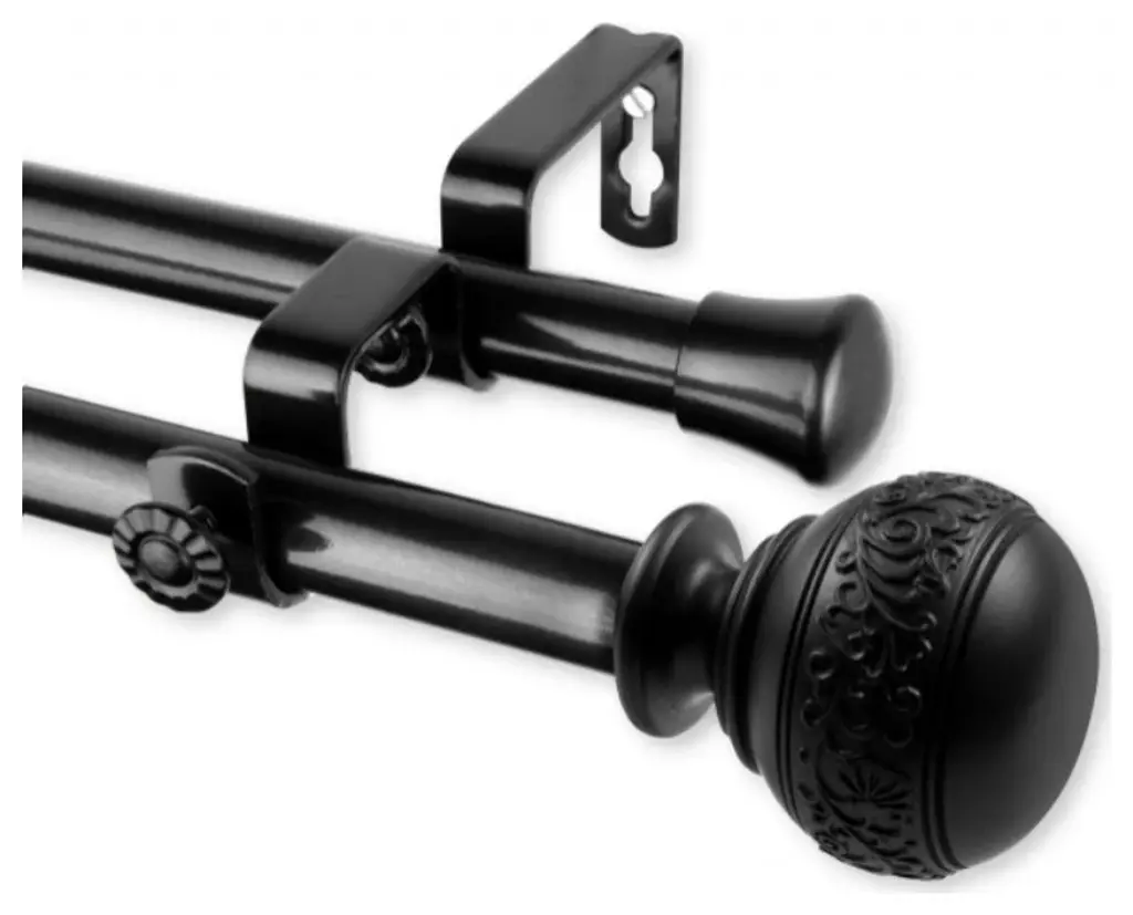 Introduce an elegant touch to your window treatment with this beautiful 13/16" diameter double curtain rod set, made of high quality steel rods. Includes 2 telescoping steel pole, mounting hardware, brackets, and 2 finials Projection: 2.875" Finial measurement: 2.75" W x 2.5" H x 2.5" D