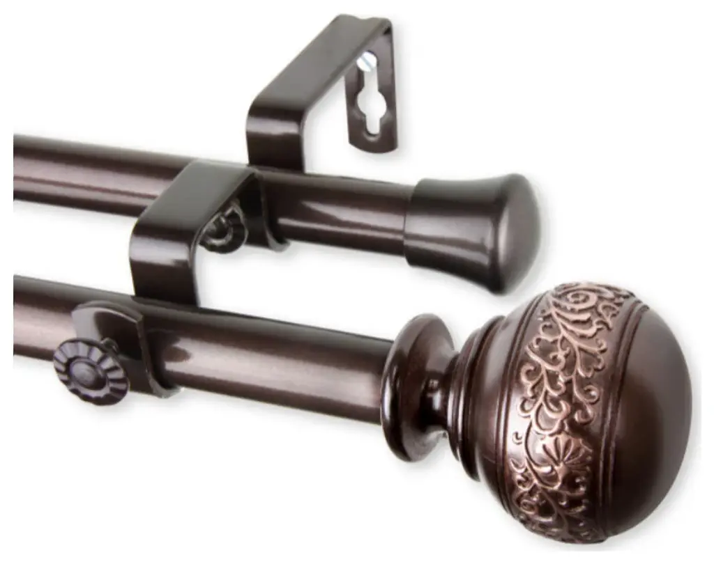 Introduce an elegant touch to your window treatment with this beautiful 13/16" diameter double curtain rod set, made of high quality steel rods. Includes 2 telescoping steel pole, mounting hardware, brackets, and 2 finials Projection: 2.875" Finial measurement: 2.75" W x 2.5" H x 2.5" D