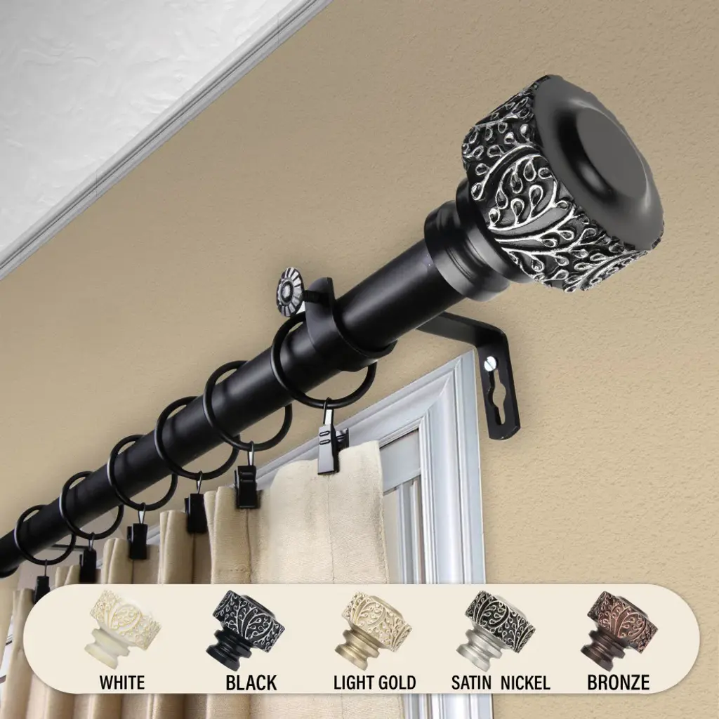 Central Design Products is thrilled to present our top-of-the-line Single Curtain Rods, the ultimate addition to any window treatment. Our high-quality rods are crafted with precision to provide a sleek and modern look to your home decor. Each set includes a single curtain rod, finials, sturdy mounting brackets, and all necessary mounting hardware. The elegant color of our curtain rods adds a touch of sophistication to your space. Upgrade your window treatment with Central Design Products'' Single Curtain Rods today! Includes 1 curtain rod of 1" diameter, finials, mounting brackets, and mounting hardware. Size: 48-84" Projection: 3.625" Rod Diameter: 1" Material: Steel