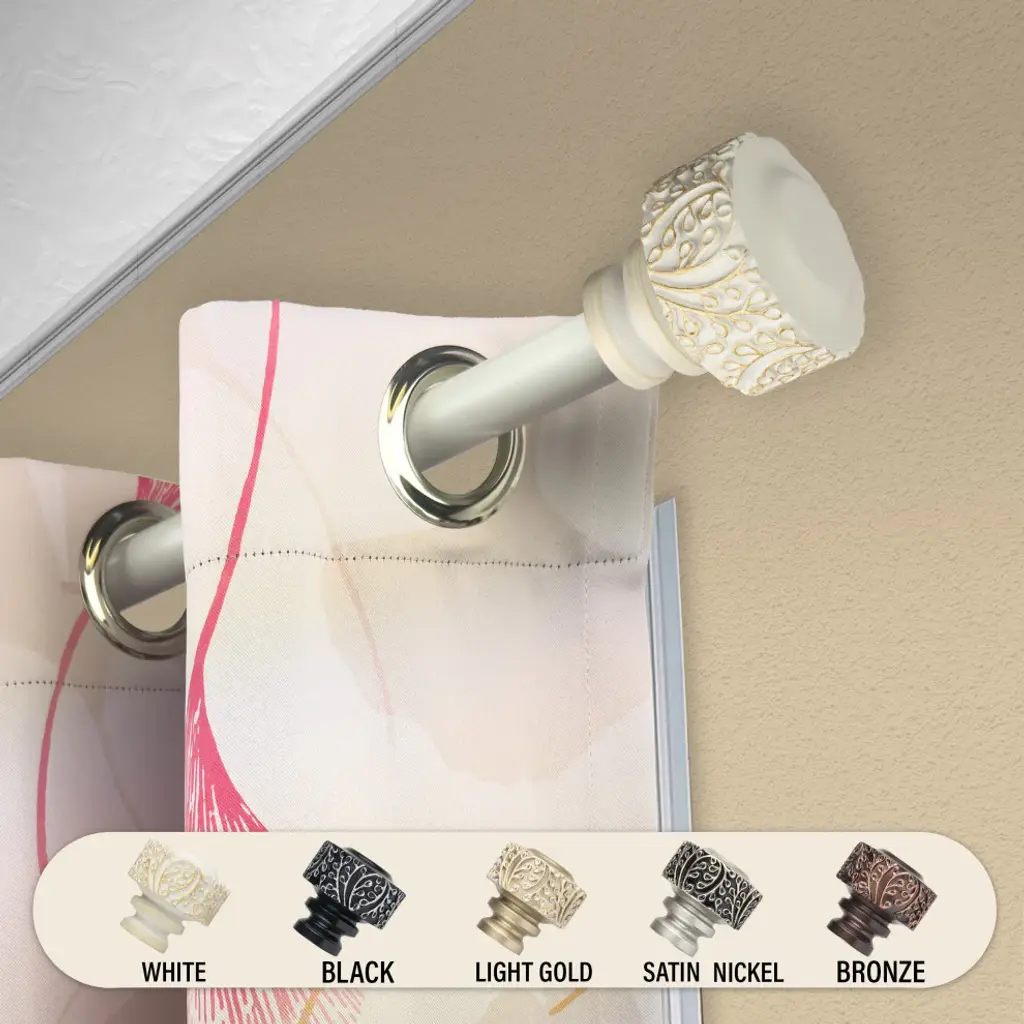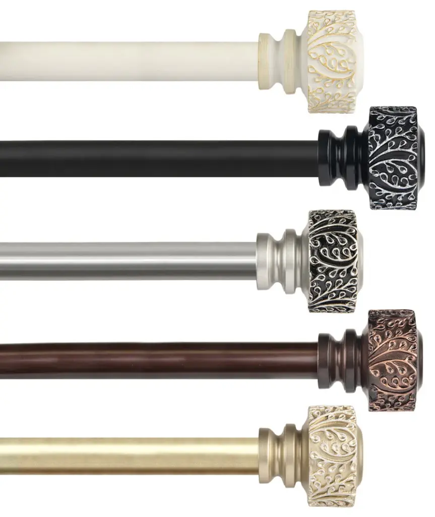 Central Design Products is thrilled to present our top-of-the-line Single Curtain Rods, the ultimate addition to any window treatment. Our high-quality rods are crafted with precision to provide a sleek and modern look to your home decor. Each set includes a single curtain rod, finials, sturdy mounting brackets, and all necessary mounting hardware. The elegant color of our curtain rods adds a touch of sophistication to your space. Upgrade your window treatment with Central Design Products'' Single Curtain Rods today! Includes 1 curtain rod of 1" diameter, finials, mounting brackets, and mounting hardware. Size: 66-120" Projection: 3.625" Rod Diameter: 1" Material: Steel