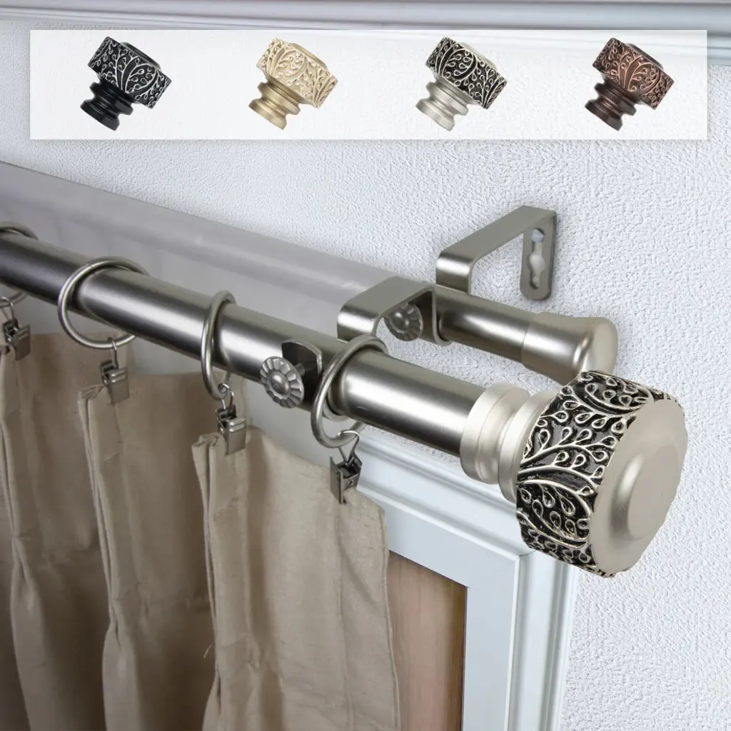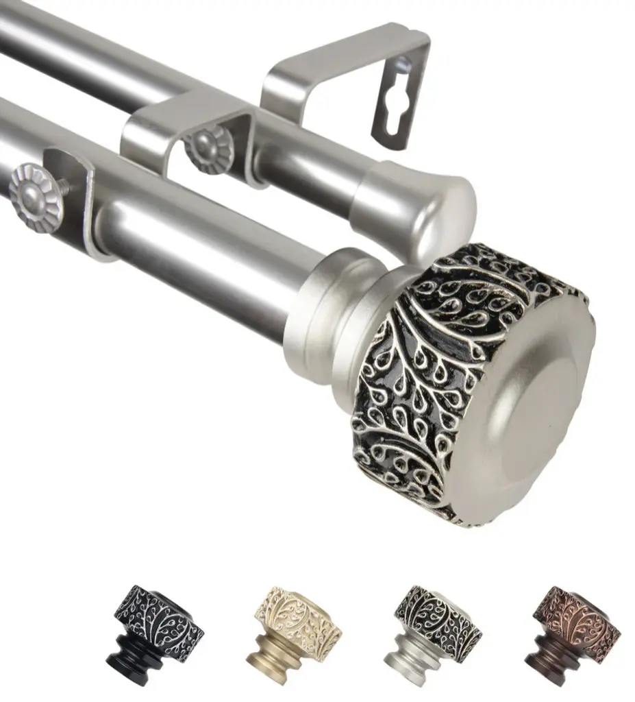 Central Design Products is thrilled to present our top-of-the-line Double Curtain Rods, the ultimate addition to any window treatment. Our high-quality rods are crafted with precision to provide a sleek and modern look to your home decor. Each set includes a double curtain rod, finials, sturdy mounting brackets, and all necessary mounting hardware. The elegant color of our curtain rods adds a touch of sophistication to your space. Upgrade your window treatment with Central Design Products'' Double Curtain Rods today! Includes 1 curtain rod of 1" diameter, one curtain rod of 13/16" diameter, finials, endcaps, mounting brackets, and mounting hardware. Size: 66-120" Projection: 6.75" Front Rod Diameter: 1" / Back Rod Diameter: 13/16" Material: Steel