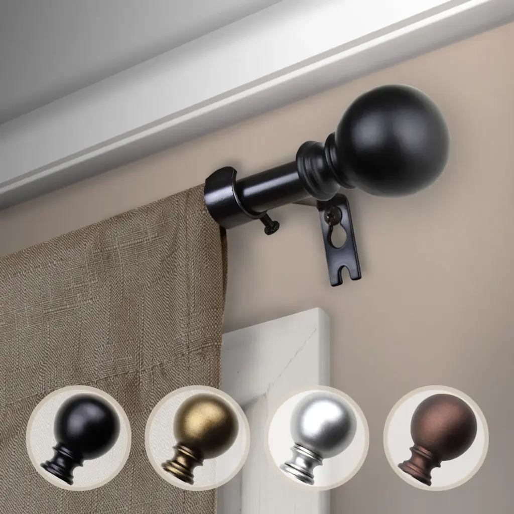 Update your home decor with Rod Desyne Drapery Hardware. This classic curtain rod adds a refined touch and elegant charm to your living area. Complete your home d?cor with matching double rods, holdbacks, and curtain rings.Features:Includes one 5/8 inch diameter high quality steel telescoping pole, extends 48-84 inch, 3 brackets and 2 finialsEach Luna finial measures W 2" x H 1-1/2" x D 1-1/2"Projection: 2.75"