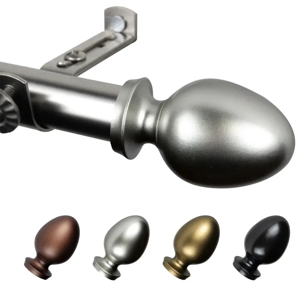 Update your home decor with Rod Desyne Drapery Hardware. This classic curtain rod adds a refined touch and elegant charm to your living area. Complete your home d?cor with matching double rods, holdbacks, and curtain rings.Features:Includes one 5/8 inch diameter high quality steel telescoping pole, extends 28-48 inch, 2 brackets and 2 finialsEach Luna finial measures W 2" x H 1-1/2" x D 1-1/2"Projection: 2.75"