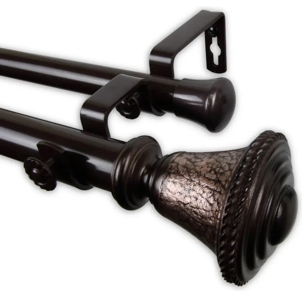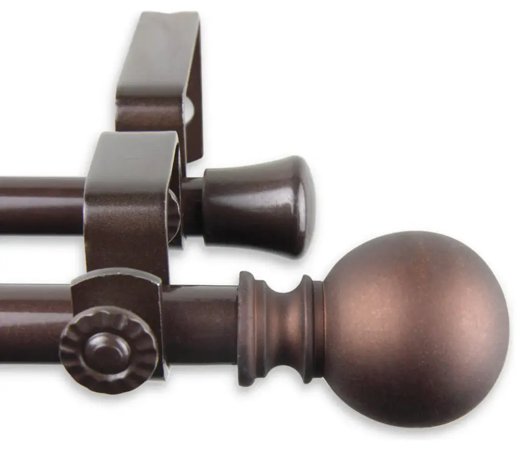 Luna Double Curtain Rod 5/8"ww 48-84"d, Cocoa