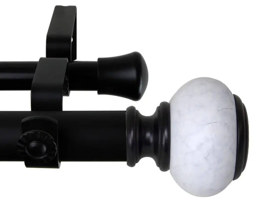 Lyla 1"d Double Curtain Rod, Black, 120-170"