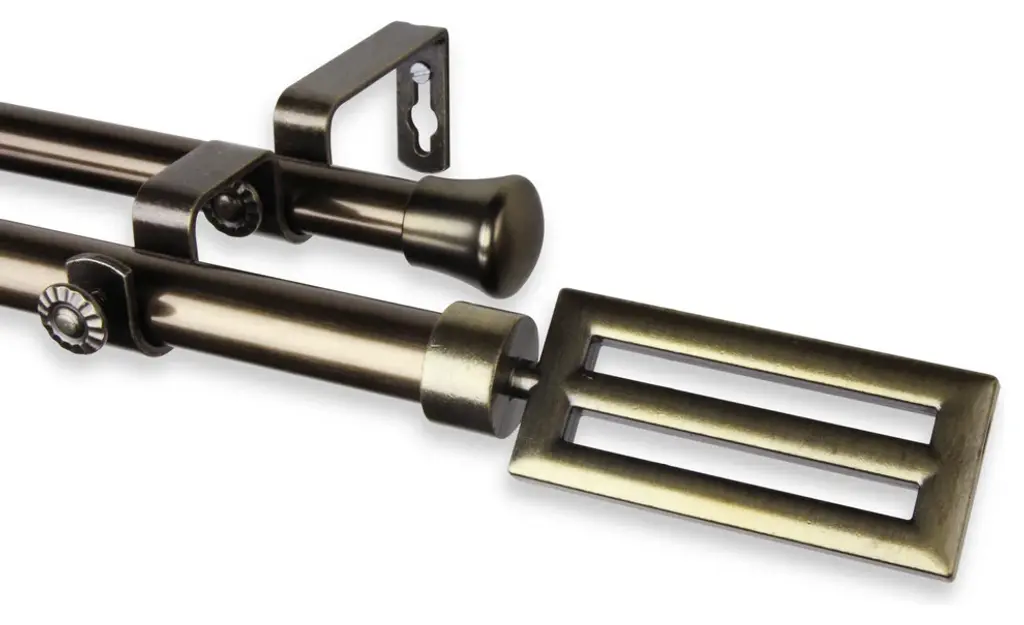 Mabel 13/16" Double Corner Window Curtain Rod, Antique Brass, 66-120"