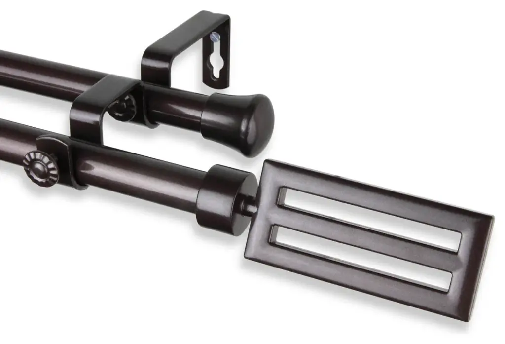 Mabel 13/16" Double Corner Window Curtain Rod, Cocoa, 66-120"