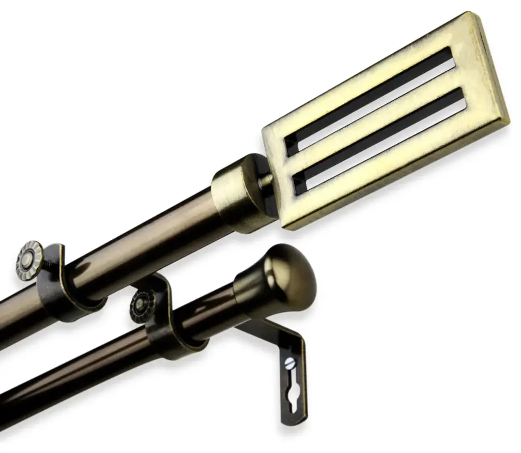 Central Design Products is pleased to introduce our designer-looking adjustable 13/16 Diameter Double Drapery Rod made with high quality steel pole. Includes one 13/16 in. diameter telescoping rod, 2-finials, mounting brackets and mounting hardwareProjections: 2.875 inches Finial measurement: W 4-1/2 inches, H 1-5/8 inches, D 1-5/8 inchesEach rod extend from 28-48 inchesSteel Rod and Resin FinialInstallation Instructions Included