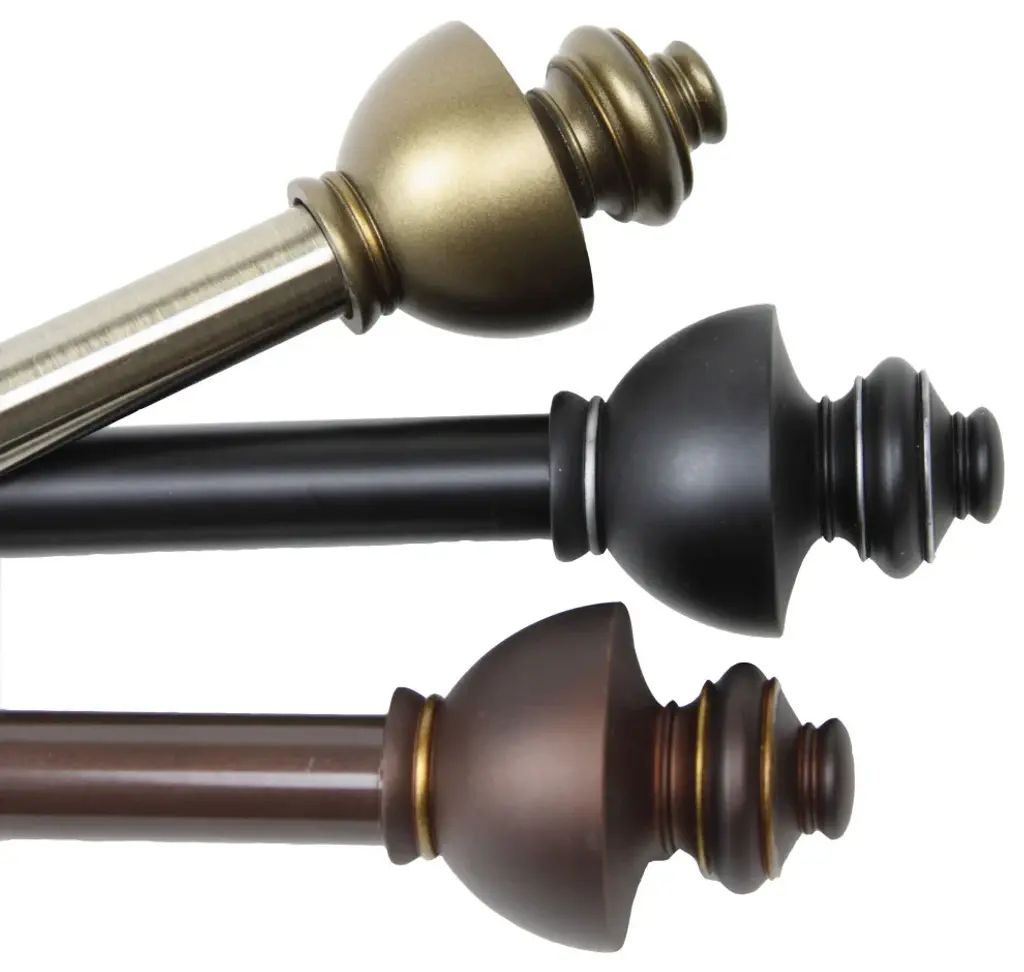 Central Design Products is pleased to introduce our designer-looking adjustable 13/16 Diameter Double Drapery Rod made with high quality steel pole. Includes one 13/16 in. diameter telescoping rod, 2-finials, mounting brackets and mounting hardwareProjections: 2.875 inches Finial Measurement: 3-1/8 inches W X 2-1/2 inches H x 2-1/2 inches DEach rod extend from 28-48 inchesSteel Rod and Resin FinialInstallation Instructions Included