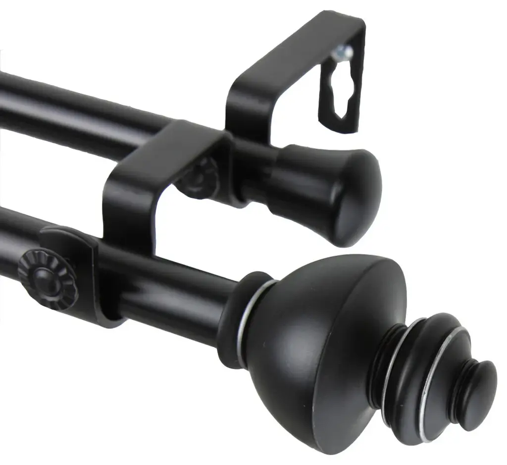 Madalena 13/16 Inch Double Corner Window Curtain Rod, Black, 48-84"