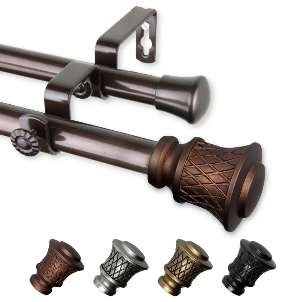 Central Design Products is pleased to introduce our designer-looking adjustable 13/16 Diameter Double Drapery Rod made with high quality steel pole. Includes two 13/16 in. diameter telescoping rods, 2-finials, 2-end caps on back rod, double mounting brackets and mounting hardware.Front Rod Projection: 6.375 inches Back Rod Projection: 3.7 inchesFinial Measurement: 3-1/8 inches W X 2-1/2 inches H x 2-1/2 inches DEach rod extend from 28-48 inchesSteel Rod and Resin FinialInstallation Instructions Included
