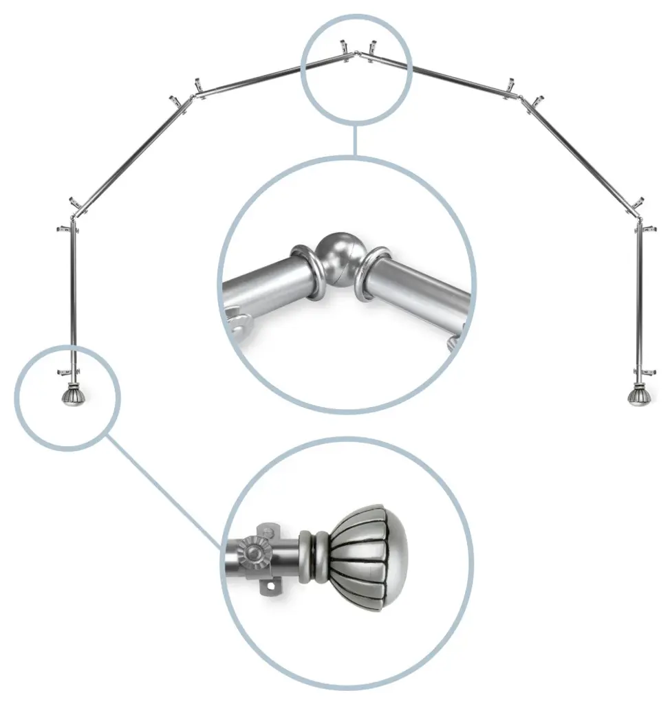 Our Multi Sided Bay Window Rod are the perfect way to decorate a multi-sided bay window with a stylist touch not often found. Offered in 3 different variations, 4, 5 and 6-sided rods can be used for multi window and bay windows. Rods connect using our corner connector which allows for a nearly 360 rotation.Includes six 13/16" diameter rods, 2 finials, 5 corner connectors, and mounting hardwareRod Projection: 2.875"Finial Measurement : 2-1/2" W x 2-1/8" H x 2-1/8" DEach rod extends from 28-48"Steel Rod and Resin Finial Instruction Included