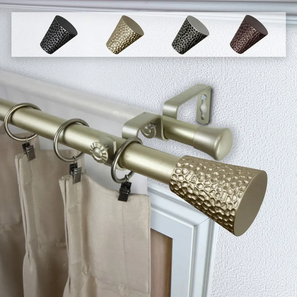 Central Design Products is thrilled to present our top-of-the-line Double Curtain Rods, the ultimate addition to any window treatment. Our high-quality rods are crafted with precision to provide a sleek and modern look to your home decor. Each set includes a double curtain rod, finials, sturdy mounting brackets, and all necessary mounting hardware. The elegant color of our curtain rods adds a touch of sophistication to your space. Upgrade your window treatment with Central Design Products'' Double Curtain Rods today! Includes 1 curtain rod of 1" diameter, one curtain rod of 13/16" diameter, finials, endcaps, mounting brackets, and mounting hardware. Size: 28-48" Projection: 6.75" Front Rod Diameter: 1" / Back Rod Diameter: 13/16" Material: Steel