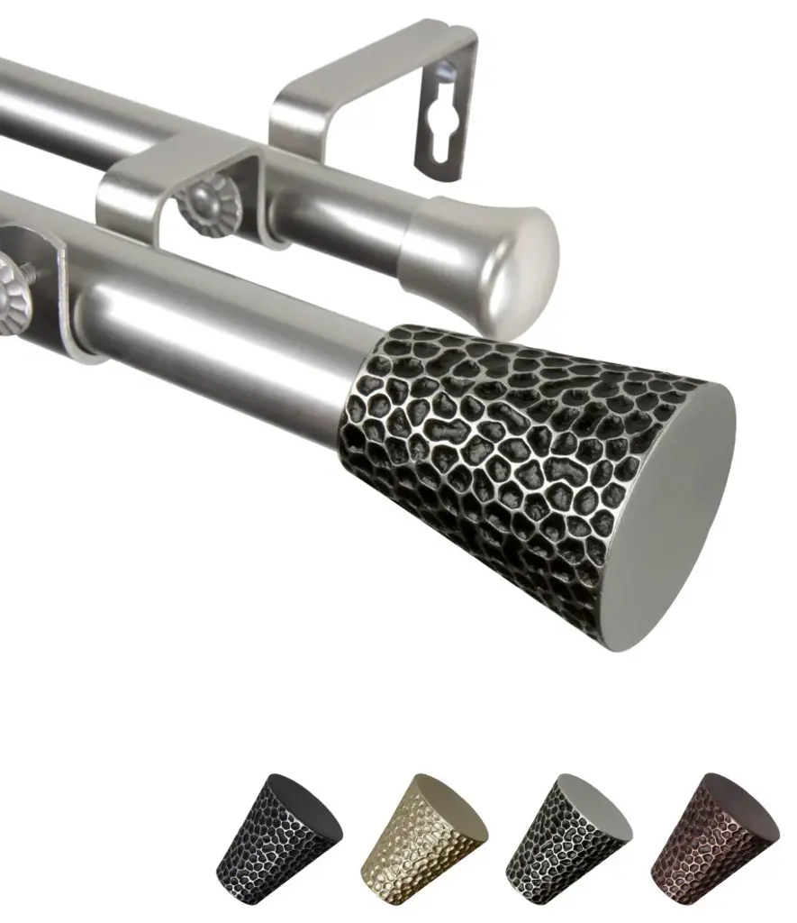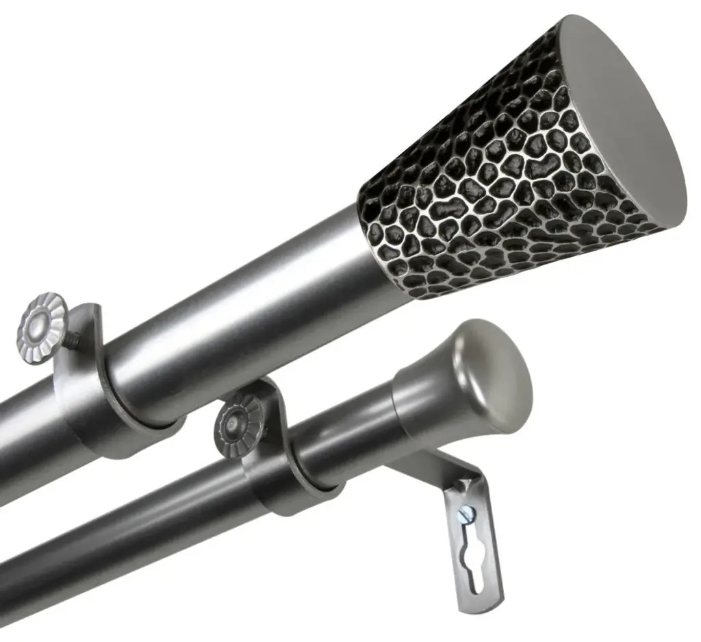 Central Design Products is thrilled to present our top-of-the-line Double Curtain Rods, the ultimate addition to any window treatment. Our high-quality rods are crafted with precision to provide a sleek and modern look to your home decor. Each set includes a double curtain rod, finials, sturdy mounting brackets, and all necessary mounting hardware. The elegant color of our curtain rods adds a touch of sophistication to your space. Upgrade your window treatment with Central Design Products'' Double Curtain Rods today! Includes 1 curtain rod of 1" diameter, one curtain rod of 13/16" diameter, finials, endcaps, mounting brackets, and mounting hardware. Size: 48-84" Projection: 6.75" Front Rod Diameter: 1" / Back Rod Diameter: 13/16" Material: Steel