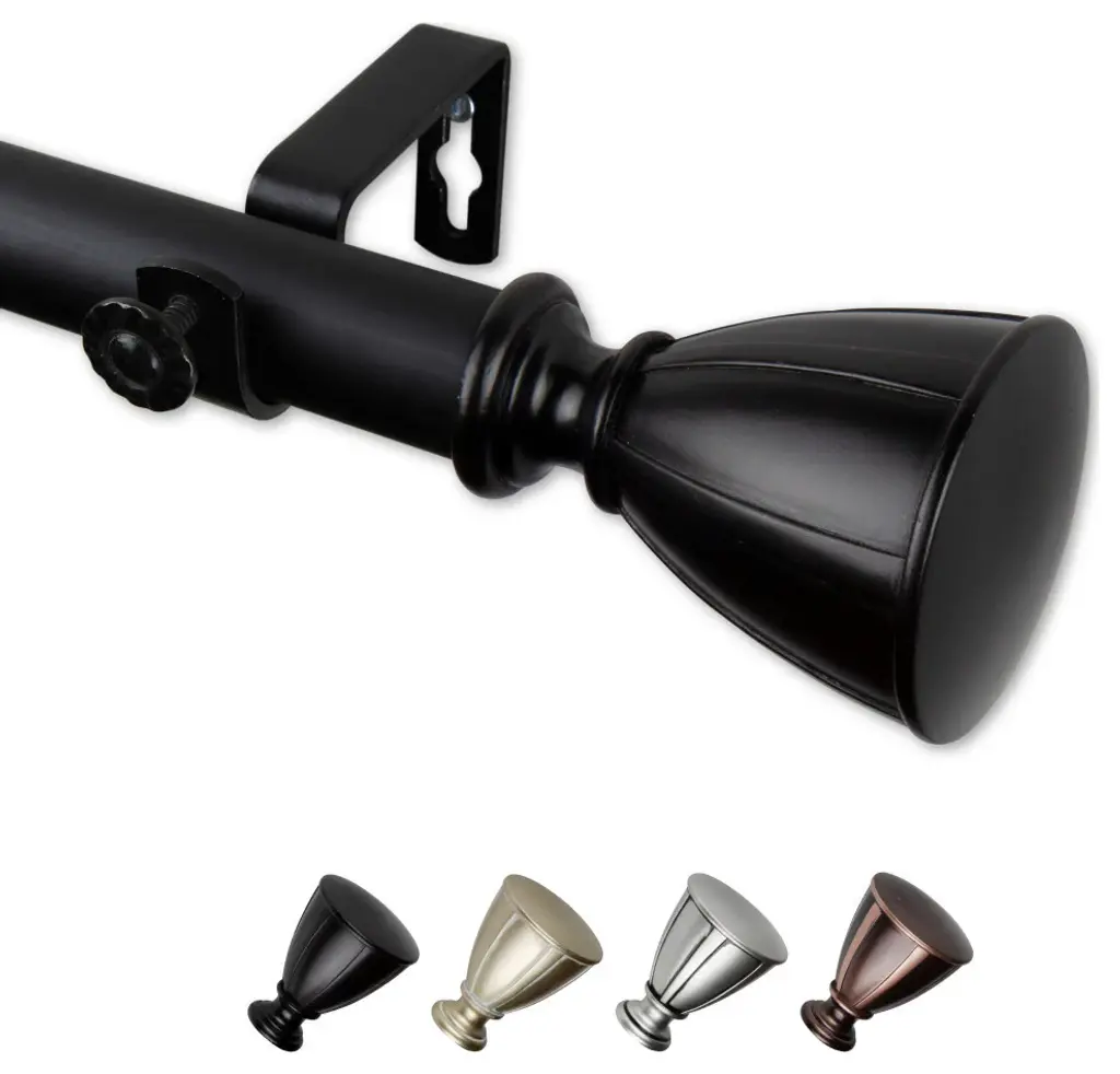 Central Design Products is thrilled to present our top-of-the-line Single Curtain Rods, the ultimate addition to any window treatment. Our high-quality rods are crafted with precision to provide a sleek and modern look to your home decor. Each set includes a single curtain rod, finials, sturdy mounting brackets, and all necessary mounting hardware. The elegant color of our curtain rods adds a touch of sophistication to your space. Upgrade your window treatment with Central Design Products'' Single Curtain Rods today! Includes 1 curtain rod of 1" diameter, finials, mounting brackets, and mounting hardware. Size: 160-240" Projection: 3.625" Rod Diameter: 1" Material: Steel
