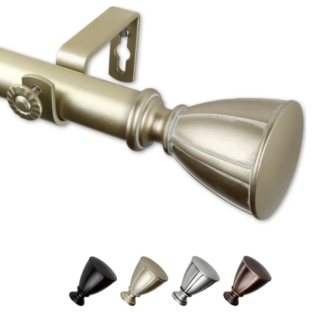 Central Design Products is thrilled to present our top-of-the-line Single Curtain Rods, the ultimate addition to any window treatment. Our high-quality rods are crafted with precision to provide a sleek and modern look to your home decor. Each set includes a single curtain rod, finials, sturdy mounting brackets, and all necessary mounting hardware. The elegant color of our curtain rods adds a touch of sophistication to your space. Upgrade your window treatment with Central Design Products'' Single Curtain Rods today! Includes 1 curtain rod of 1" diameter, finials, mounting brackets, and mounting hardware. Size: 66-120" Projection: 3.625" Rod Diameter: 1" Material: Steel