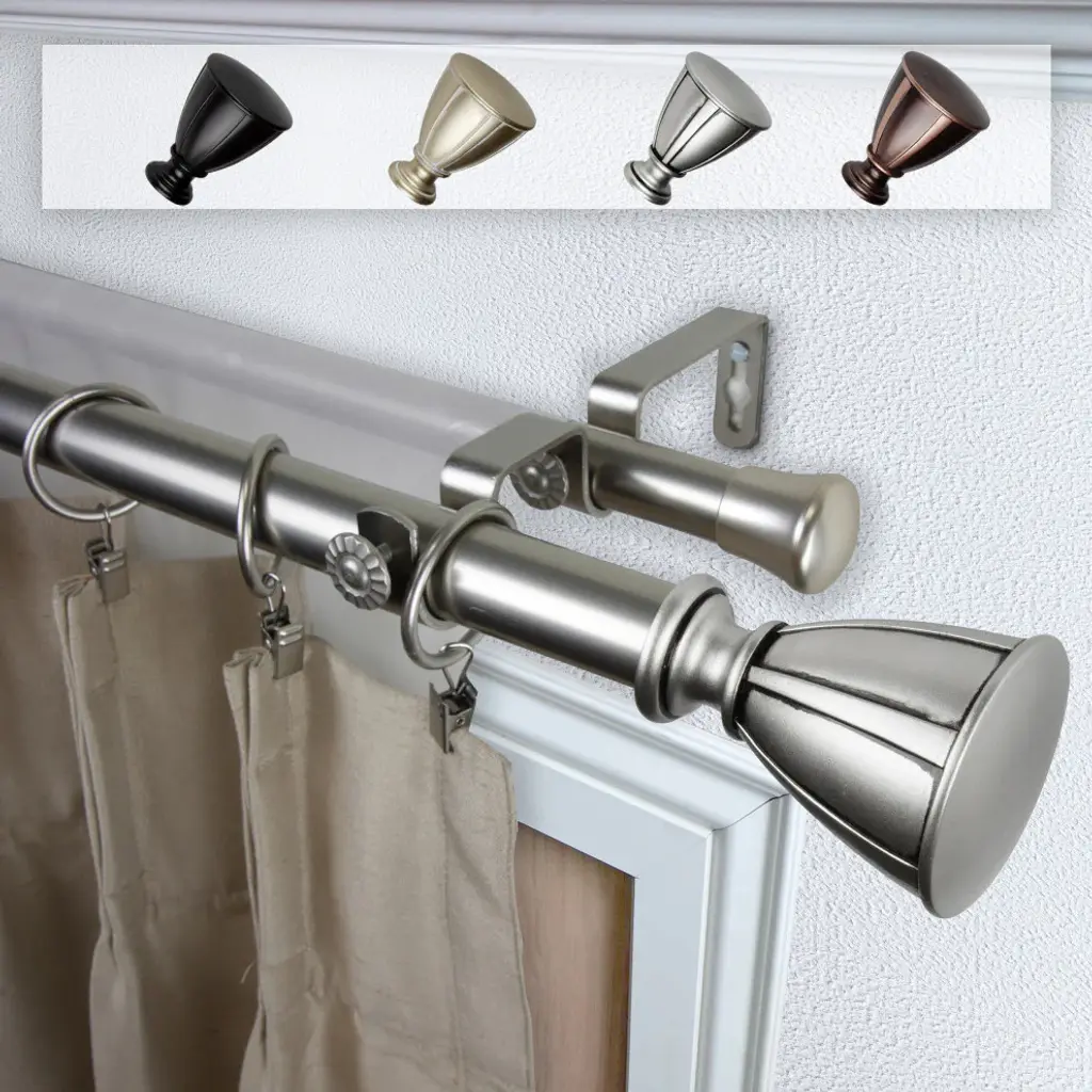 Central Design Products is thrilled to present our top-of-the-line Double Curtain Rods, the ultimate addition to any window treatment. Our high-quality rods are crafted with precision to provide a sleek and modern look to your home decor. Each set includes a double curtain rod, finials, sturdy mounting brackets, and all necessary mounting hardware. The elegant color of our curtain rods adds a touch of sophistication to your space. Upgrade your window treatment with Central Design Products'' Double Curtain Rods today! Includes 1 curtain rod of 1" diameter, one curtain rod of 13/16" diameter, finials, endcaps, mounting brackets, and mounting hardware. Size: 120-170" Projection: 6.75" Front Rod Diameter: 1" / Back Rod Diameter: 13/16" Material: Steel